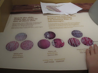 | At this station Ellie got to play the role of a paleoethnobotanist and identify wood from one of the Lake Newnans canoe. |